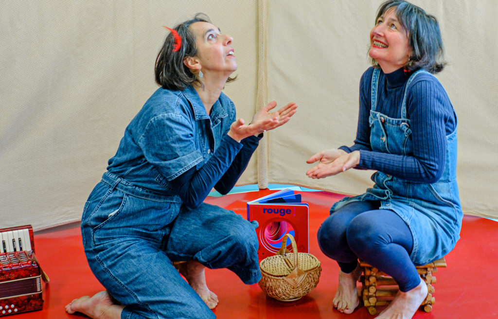 Cachettes, jeux de mots et de doigts, rimes et onomatopées pour ravir les yeux et les oreilles et ouvrir les portes de l’imaginaire. La forme se déroule idéalement dans une salle de classe et nécessite une installation minimale prise en charge par les deux comédiennes.